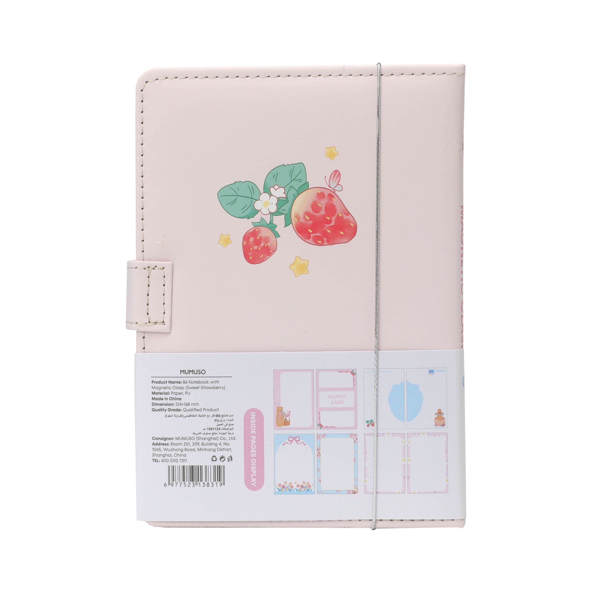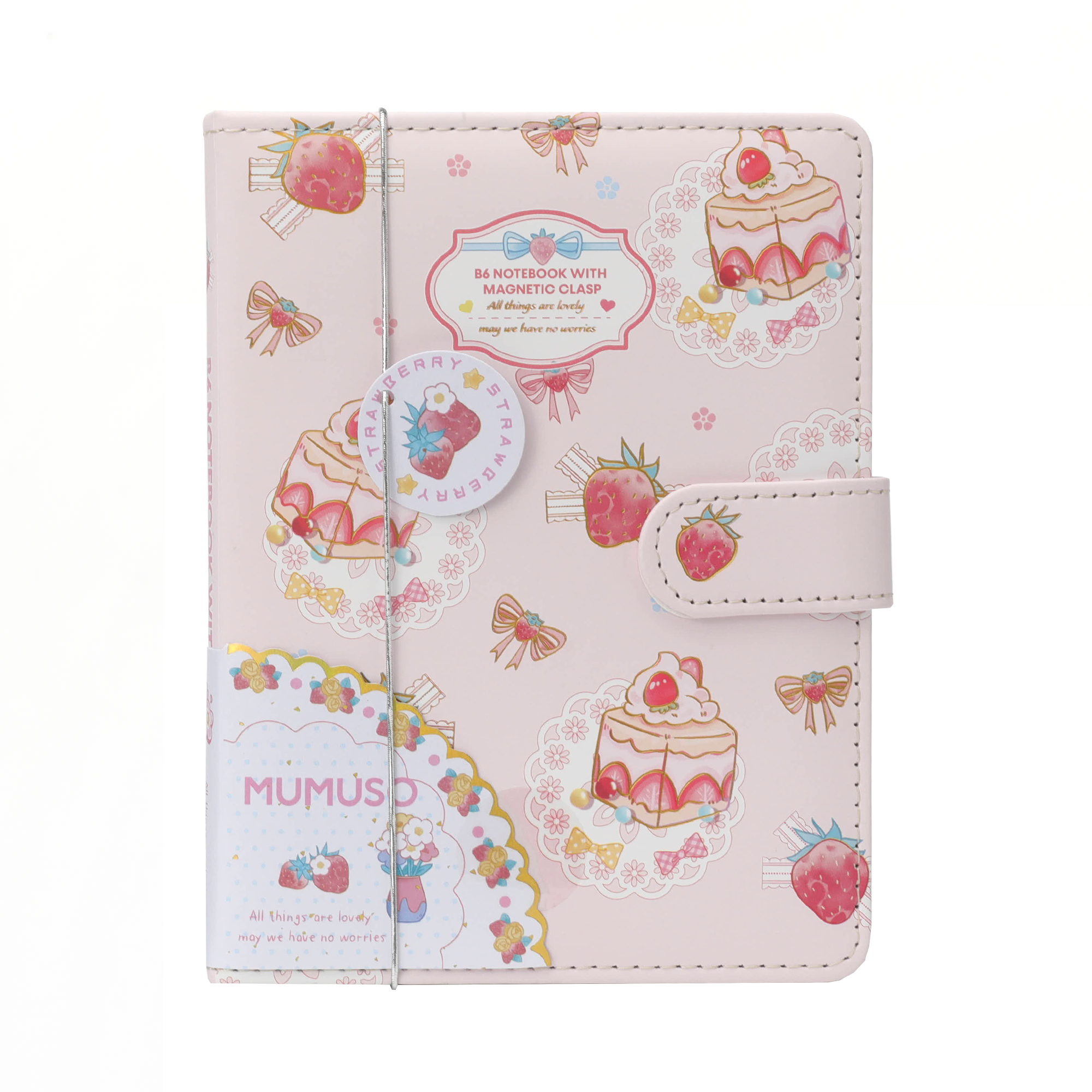 Mumuso Блокнот B6 — компактный и милый блокнот с розовой мягкой обложкой, украшенной клубникой и пирожным. Содержит 100 страниц для заметок, планов и идей. Идеален для учёбы, работы и личных записей.